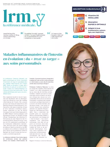 La professeure Catherine Reenaers est gastro-entérologue au Centre Hospitalier Universitaire de Liège et spécialisée dans les maladies inflammatoires de l’intestin (IBD). Après sa formation à Liège, elle a étudié dans le cadre de sa recherche doctorale l’impact de l’ostéoprotégérine sur l’interaction entre les lymphocytes T et les cellules dendritiques ainsi que sur le remodelage osseux. La rédaction de La référence médicale s’est donc réjouie que la professeure Catherine Reenaers ait trouvé le temps de nous accorder un entretien approfondi.